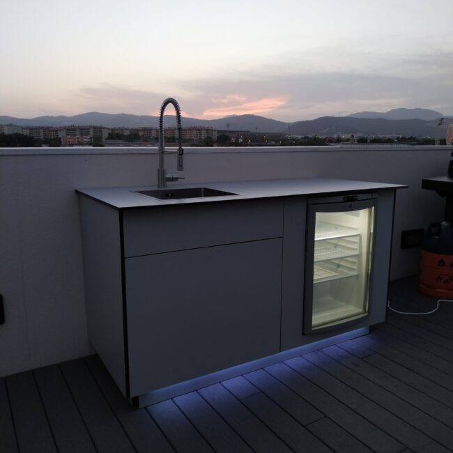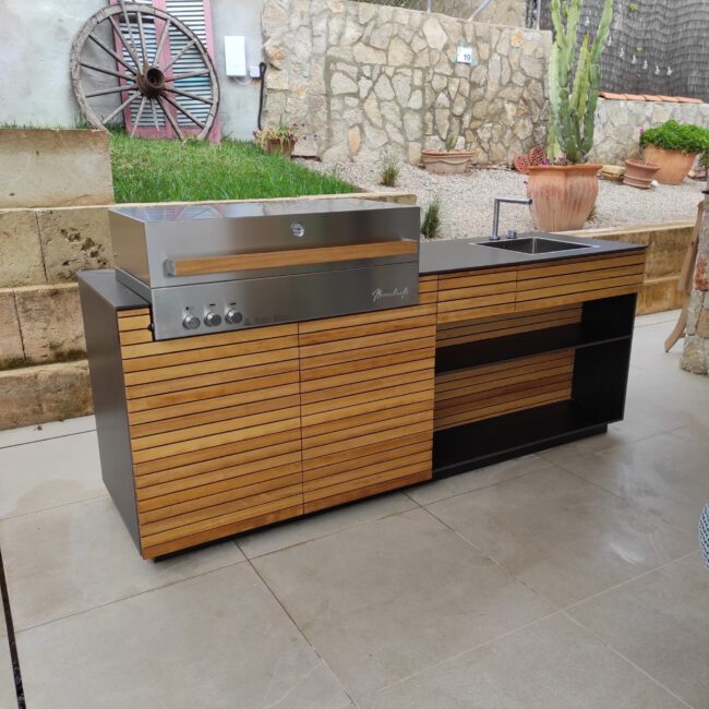 Aussenküche HPL mit Bambusverkleidung in Establiments